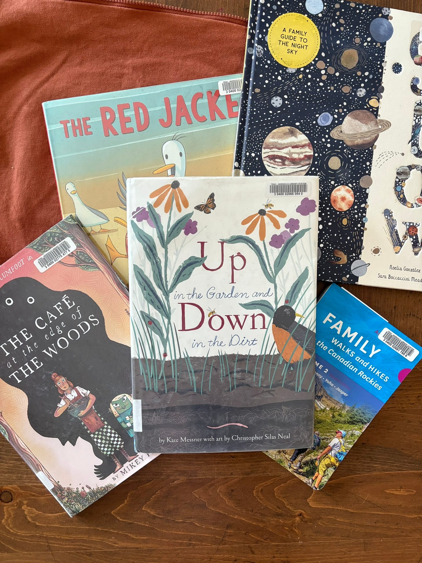 I’ve been obsessed with ordering library books lately. We live in a community that is apart of the Marigold Library System which is a satellite network of rural libraries. Our books arrive in a kiosk at the community centre in a nifty brown bag. It’s an exciting time visiting the kiosk (yes, I said exciting times visiting the kiosk!) and waiting for a locker to pop open with our latest book haul. And then, once we’re home, to see if mom (that’s me) picked a bunch of duds or if there are some good re-readable picture books. Sometimes I’ve ordered books so quickly on the app that I didn’t read the fine print and they were actually CDs. I’m impressed that the library still has CDs. Who is ordering these CD audio books?!