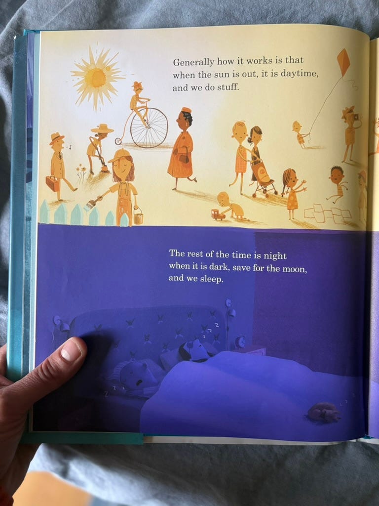 The author-illustrator Oliver Jeffers wrote this book for his first born son when everything in life started to look and feel differently as a new father. As he made sense of the world he wanted to share his insights about earth and how to live on it. Which is probably why we received this as a baby gift several times.